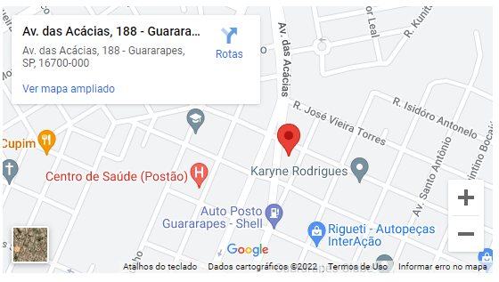 Endereço: Av. das Acácias, 188 – Guararapes, SP, 16700-000